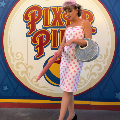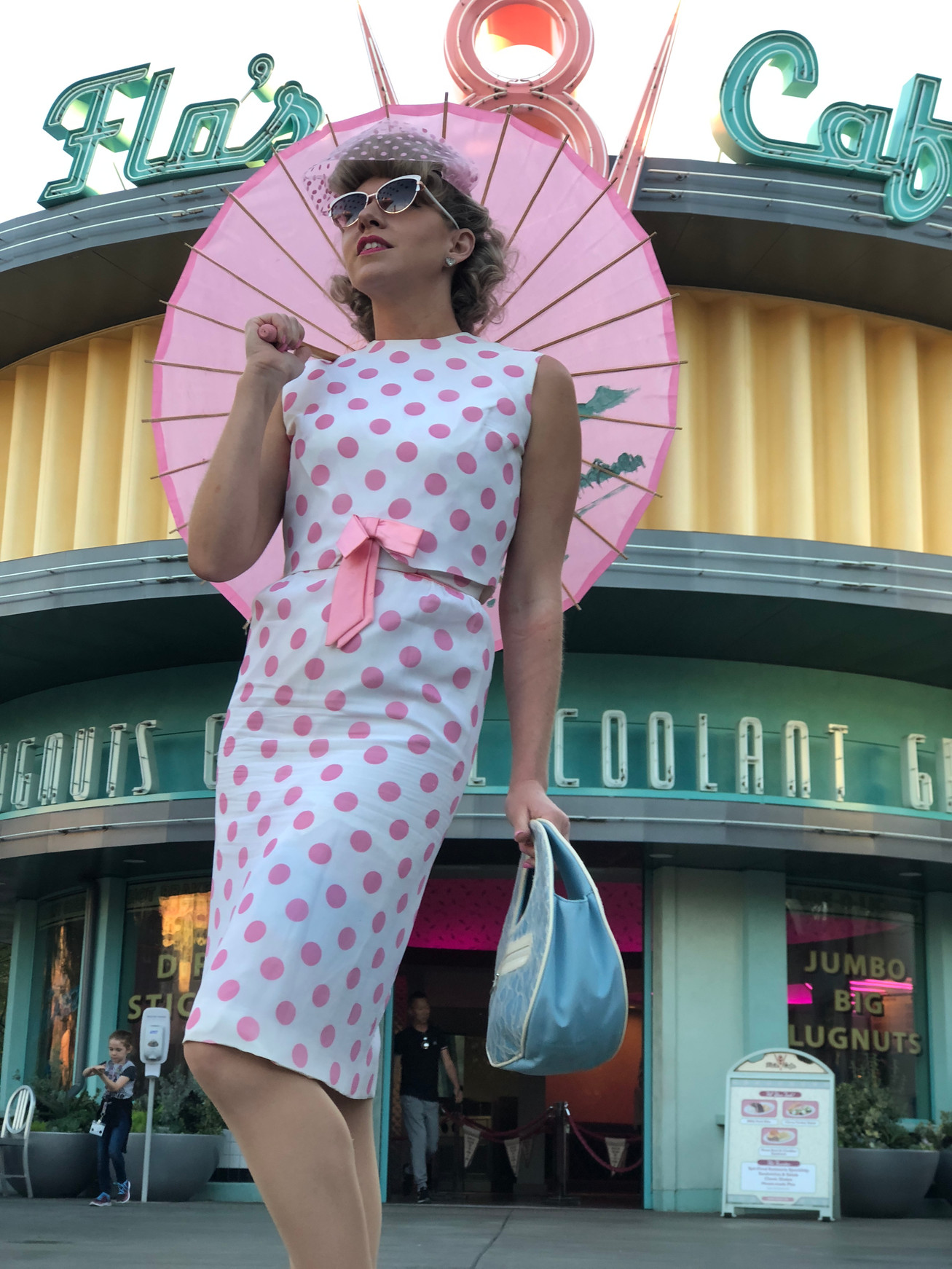 The colors just POP against that table! The parfait has a pudding on top, berry filling, and cake on the bottom. They were absolutely delicious and tasted exactly how I wanted them to. Color me pleased. We opted to go back to California Adventure, after parting ways with our friends to meet back up again later. But on our way, we ran into another friend of ours! Star! She took these (Thank you, Star!!):