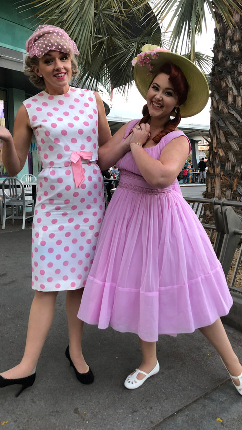 I had put on my separate top piece by now and my dress looked so cute in front of Flo's! so we took a few more pics (bonus seam shot/DJ's Dance 'n Drive Dancers photos bomb!)